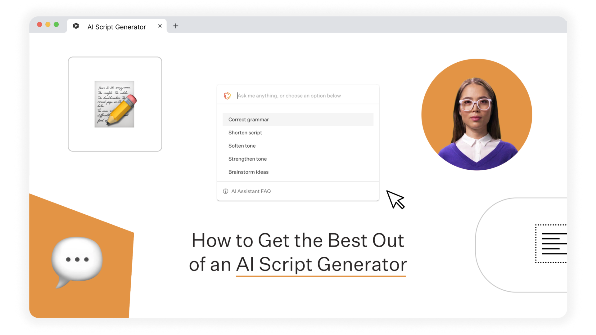 AI script generators are incredibly powerful and helpful tools for creating training videos, internal communications, and even short clips to support marketing and sales. But, like any tool, your result will only be as good as the work you put in and the process you follow for content generation.