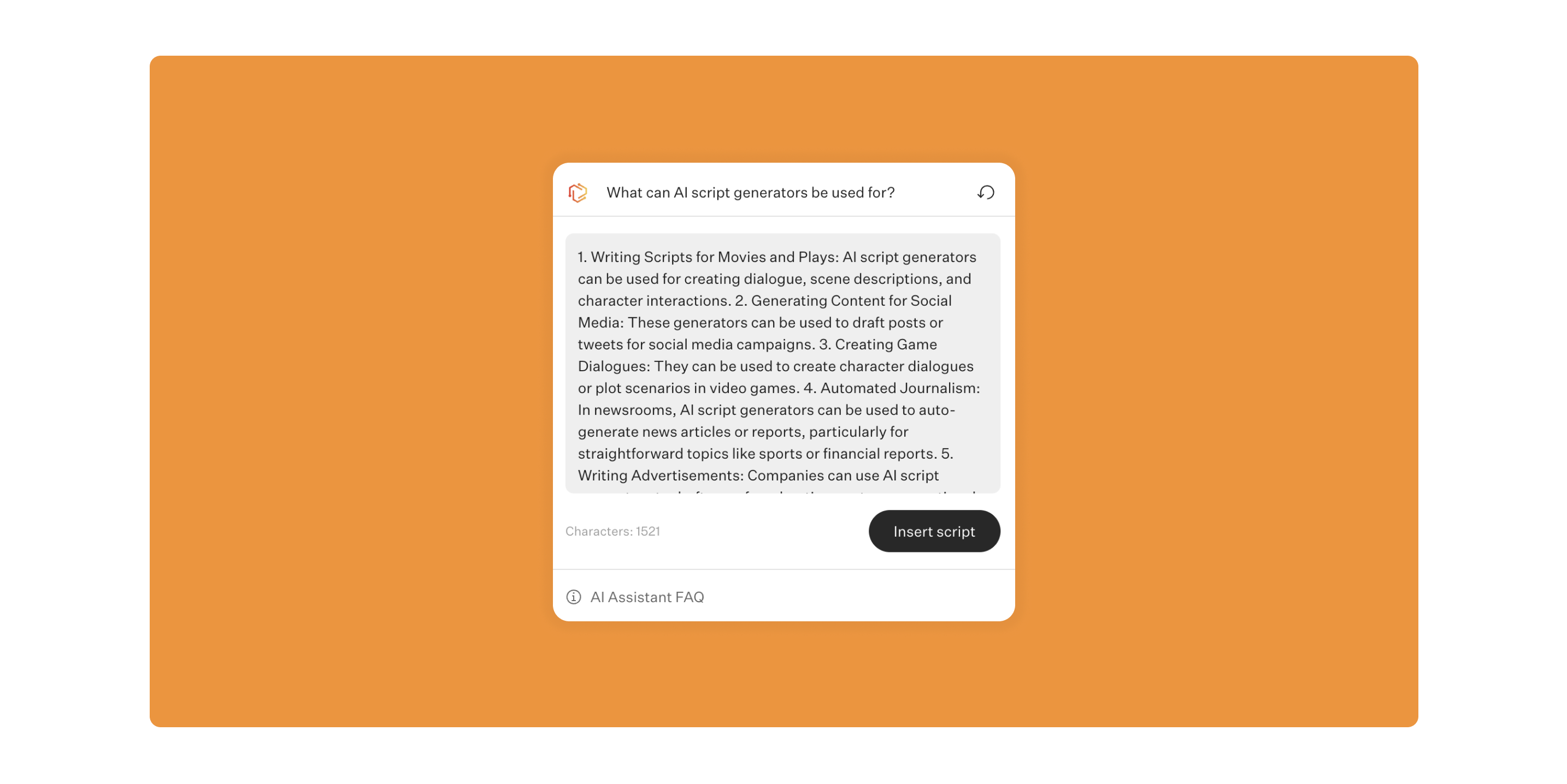 They might take a few seconds to figure out where to start, but you’ll see the script come through pretty quickly. You might even use your AI script assistant to generate some starting points and prompts, then take the reins from there.