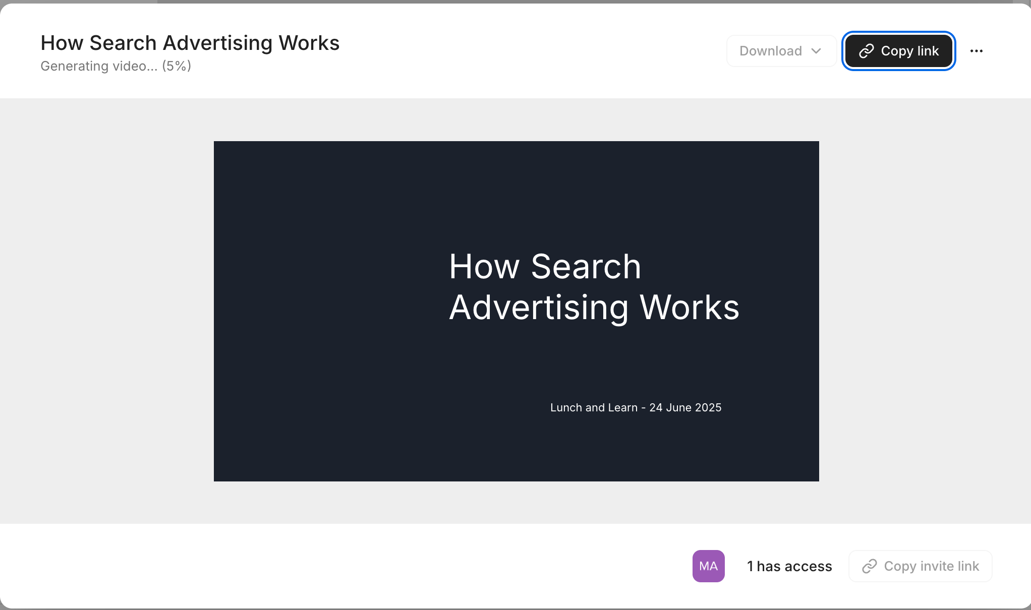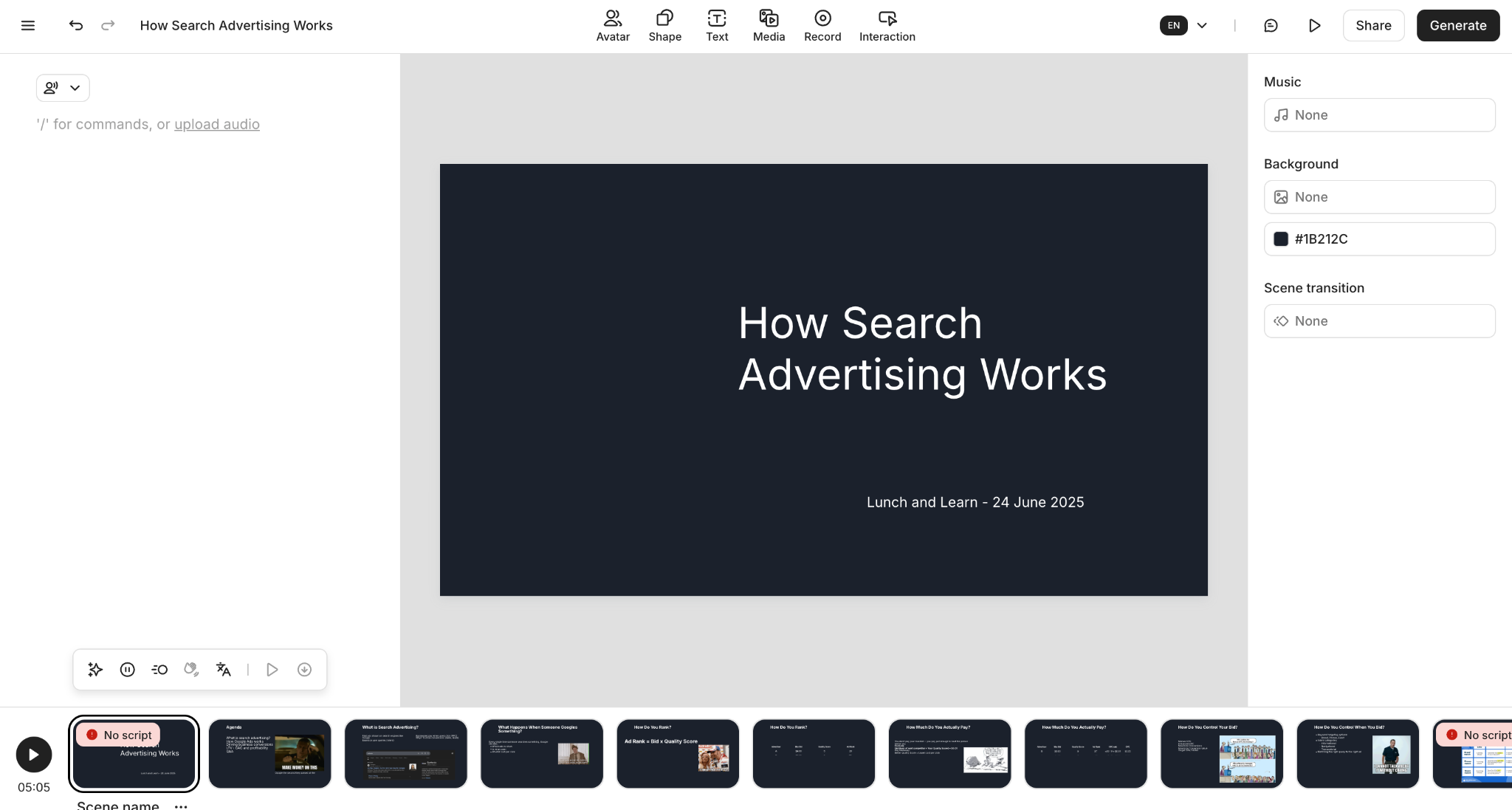 - Once happy, click Generate to create the final video.