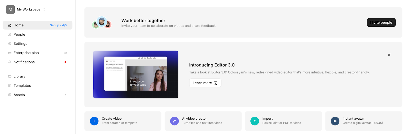 - Log into Colossyan and go to the Home Page.