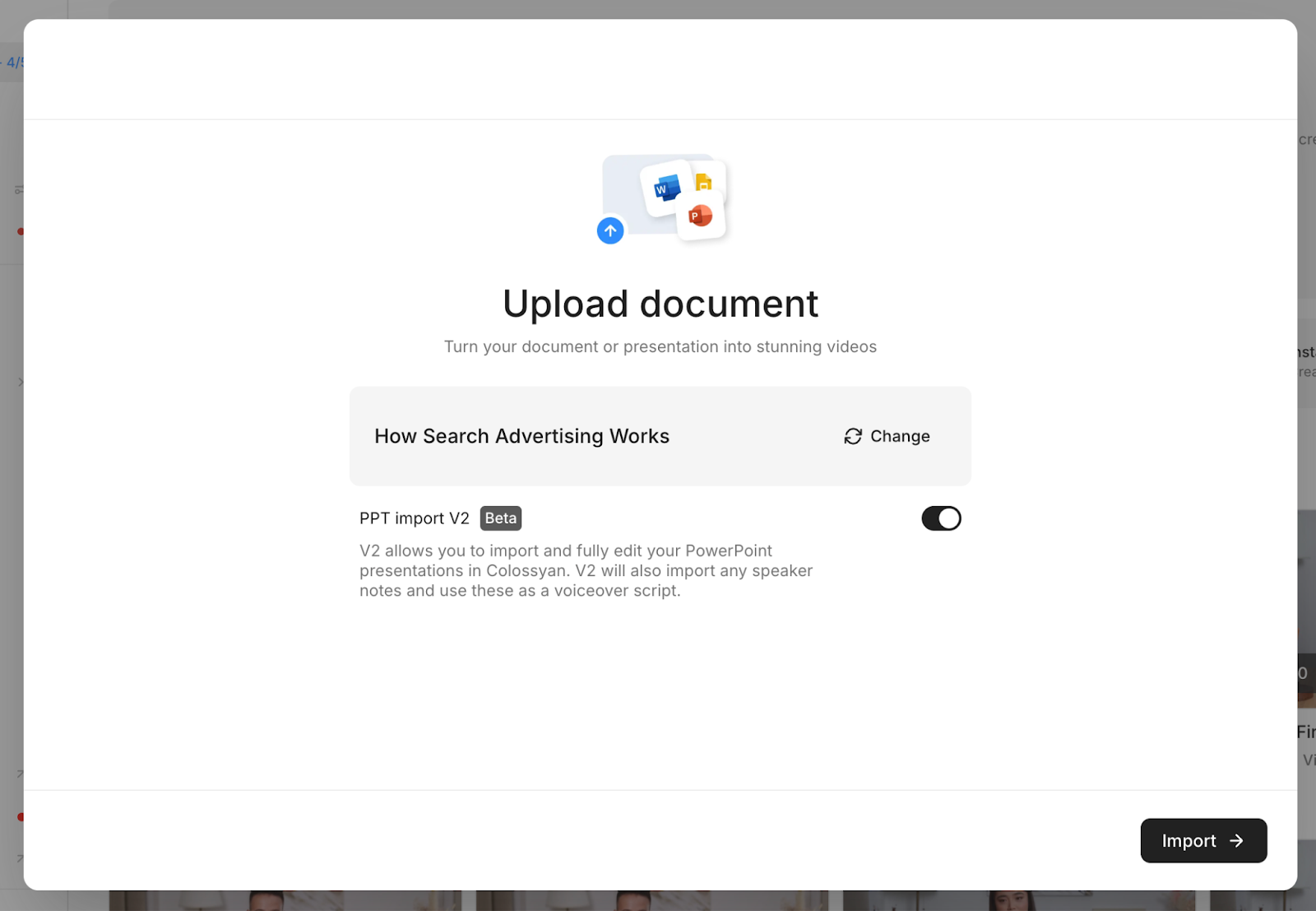 - Choose PPT/PDF Import if you already have slides prepared.